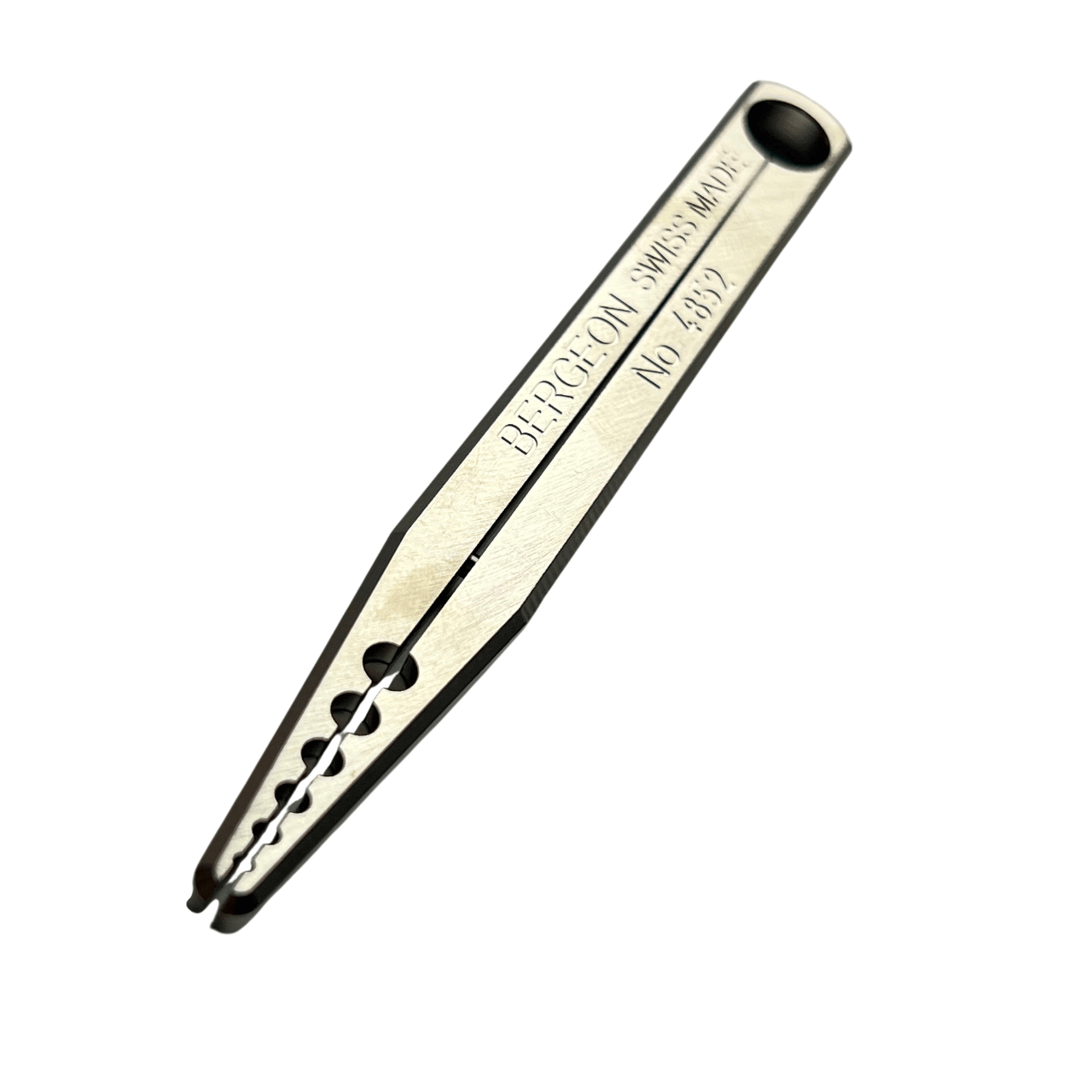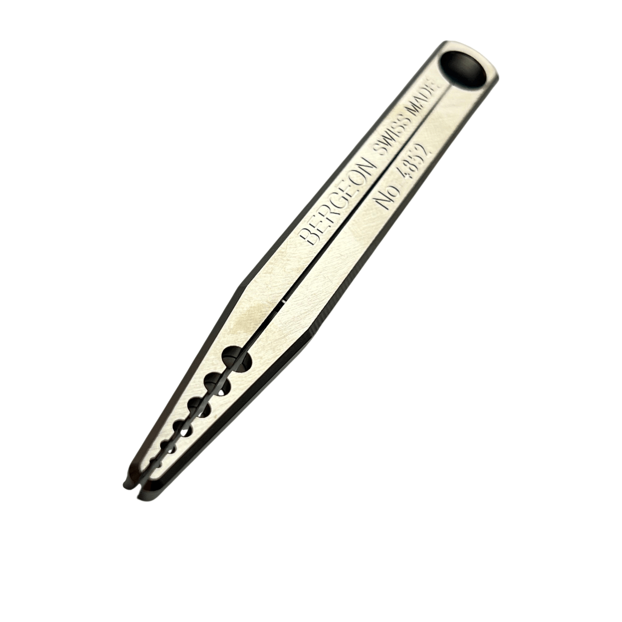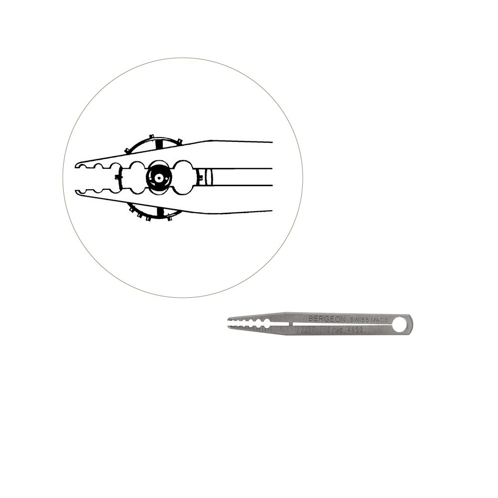 The Bergeon 4852 is a precision instrument designed for watchmakers, featuring an innovative tweezers-like design that allows for precise adjustments to roller jewels. With six different size holes, this tool enables fine-tuning of even the smallest components, ensuring accurate work and optimal performance.