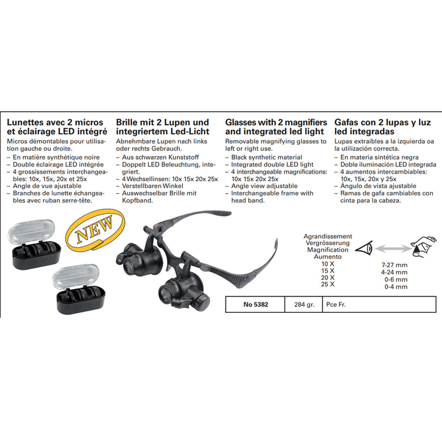 - Interchangeable magnifications: x10, x15, x20, and x25 for precise work