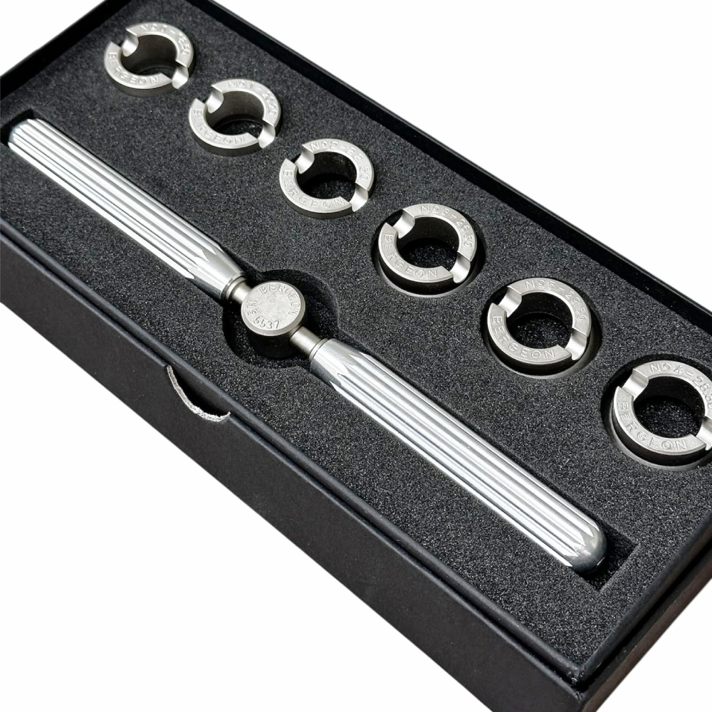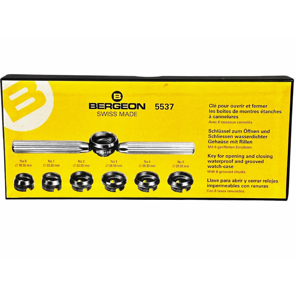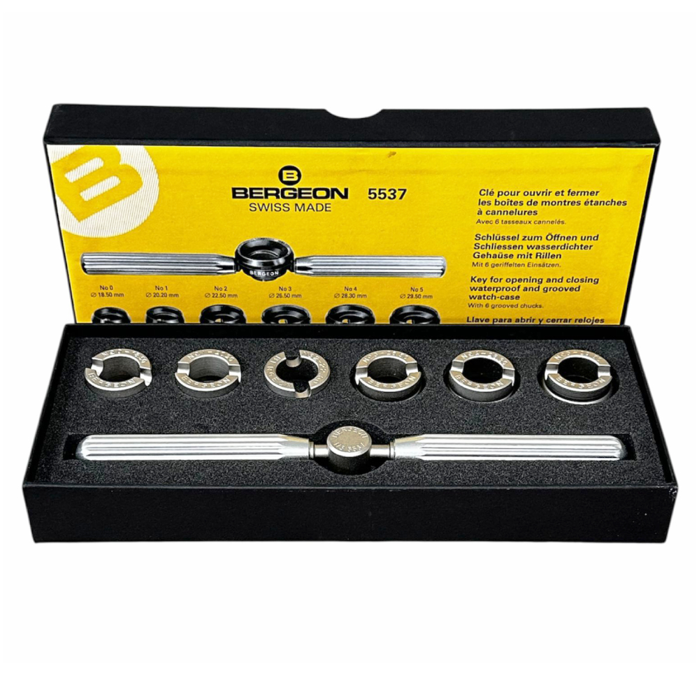 The Bergeon 5537 is a premium, precision-engineered tool designed specifically for opening and closing waterproof and grooved watch cases, including those from renowned brands like Rolex and Tudor. This expert-grade key set is the ultimate solution for watchmakers, collectors, and enthusiasts seeking to access their timepieces with ease.