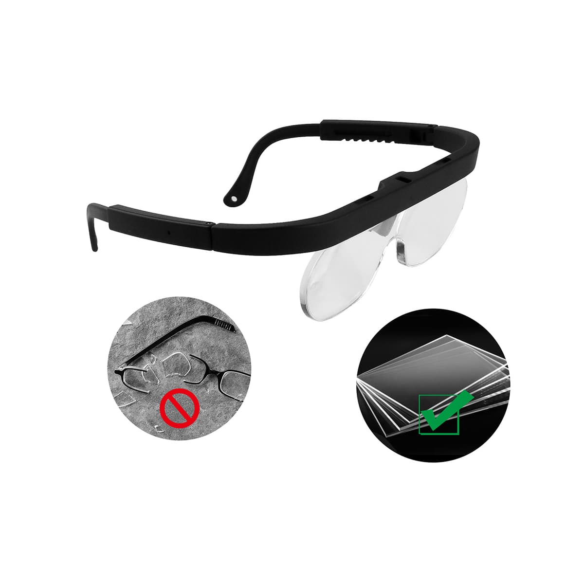 Eyeglasses with exchangeable lens for jewellers and watchmakers 1.5x, 2.5x and 3.5x