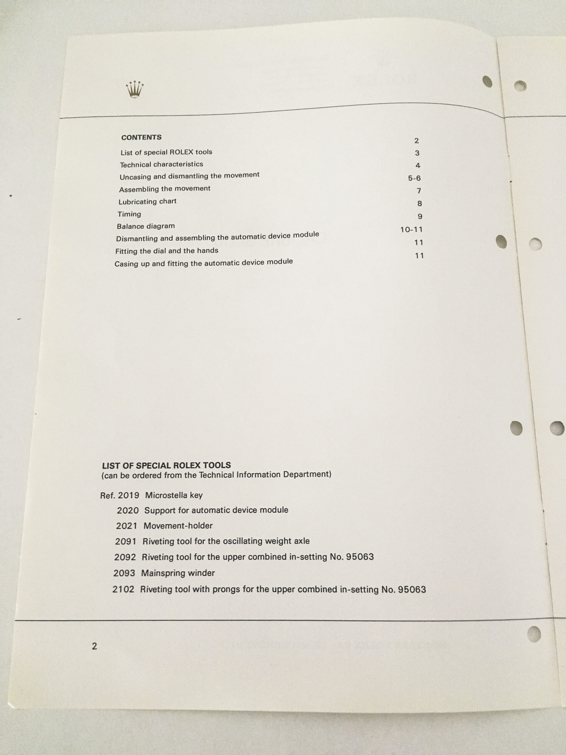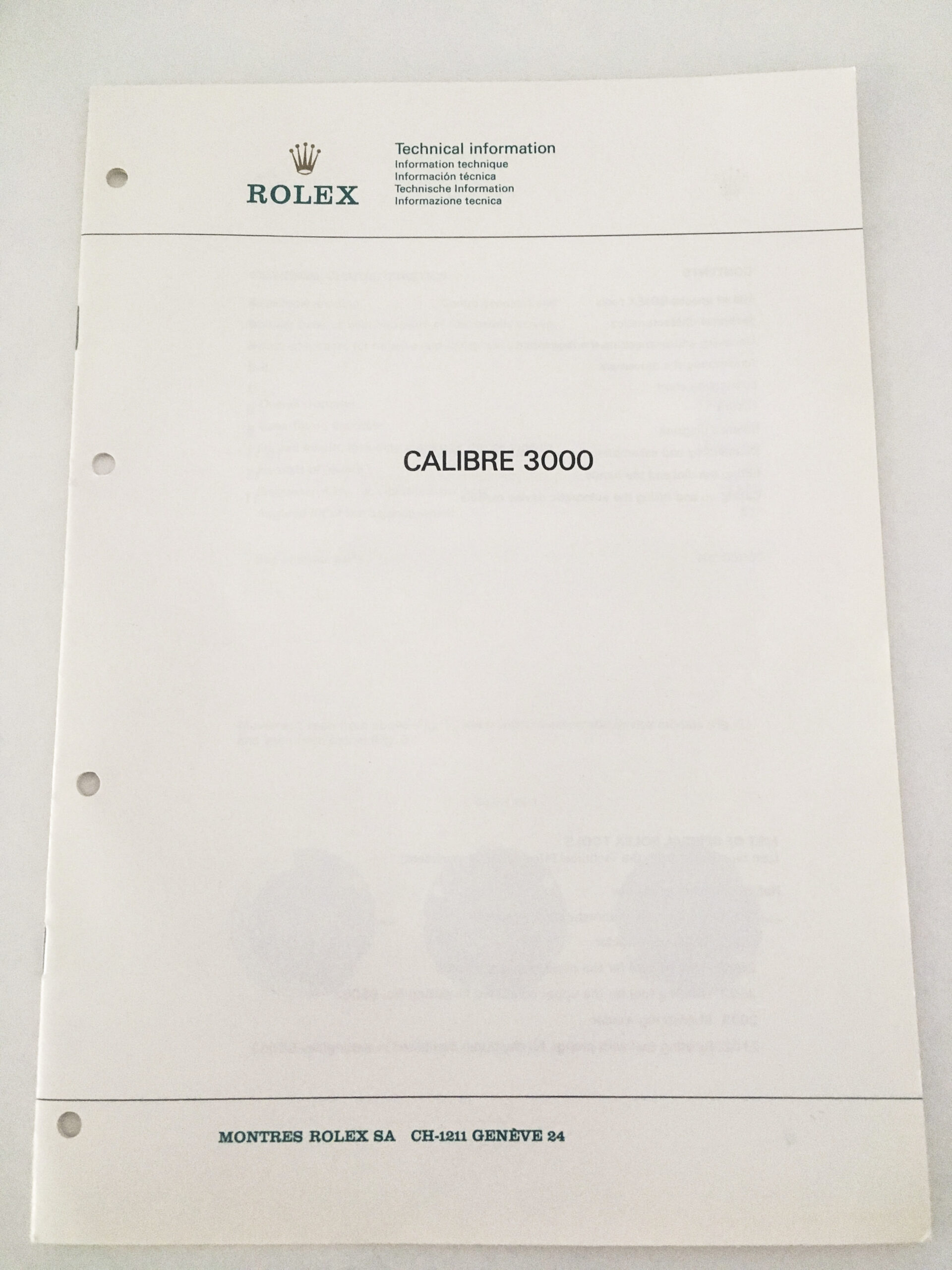 Genuine Rolex Caliber 3000 Technical Information Service Catalog