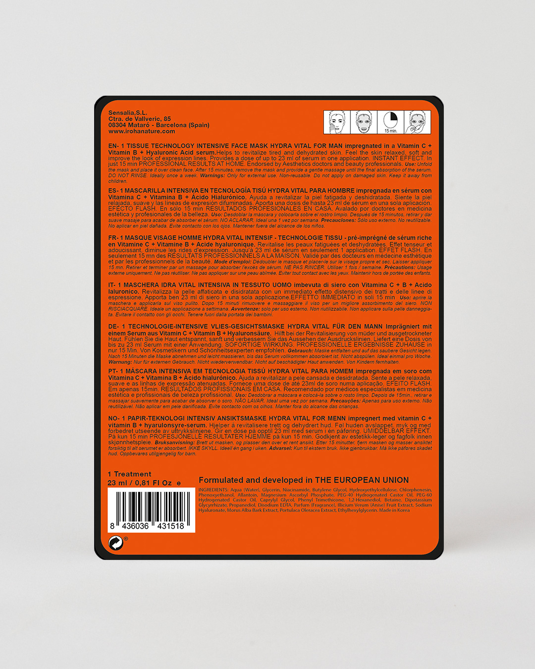 Revitalize Your Skin in Minutes with the IROHA Hydravital Men Sheet Mask.