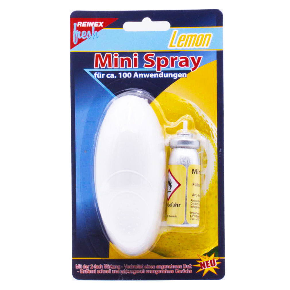 Bring a touch of citrus freshness to your bathroom with the Reinex Mini Spray Lemon, a compact and convenient solution for a pleasant scent. This easy-to-use spray is designed to provide hours of fragrance with just one press on the cartridge.