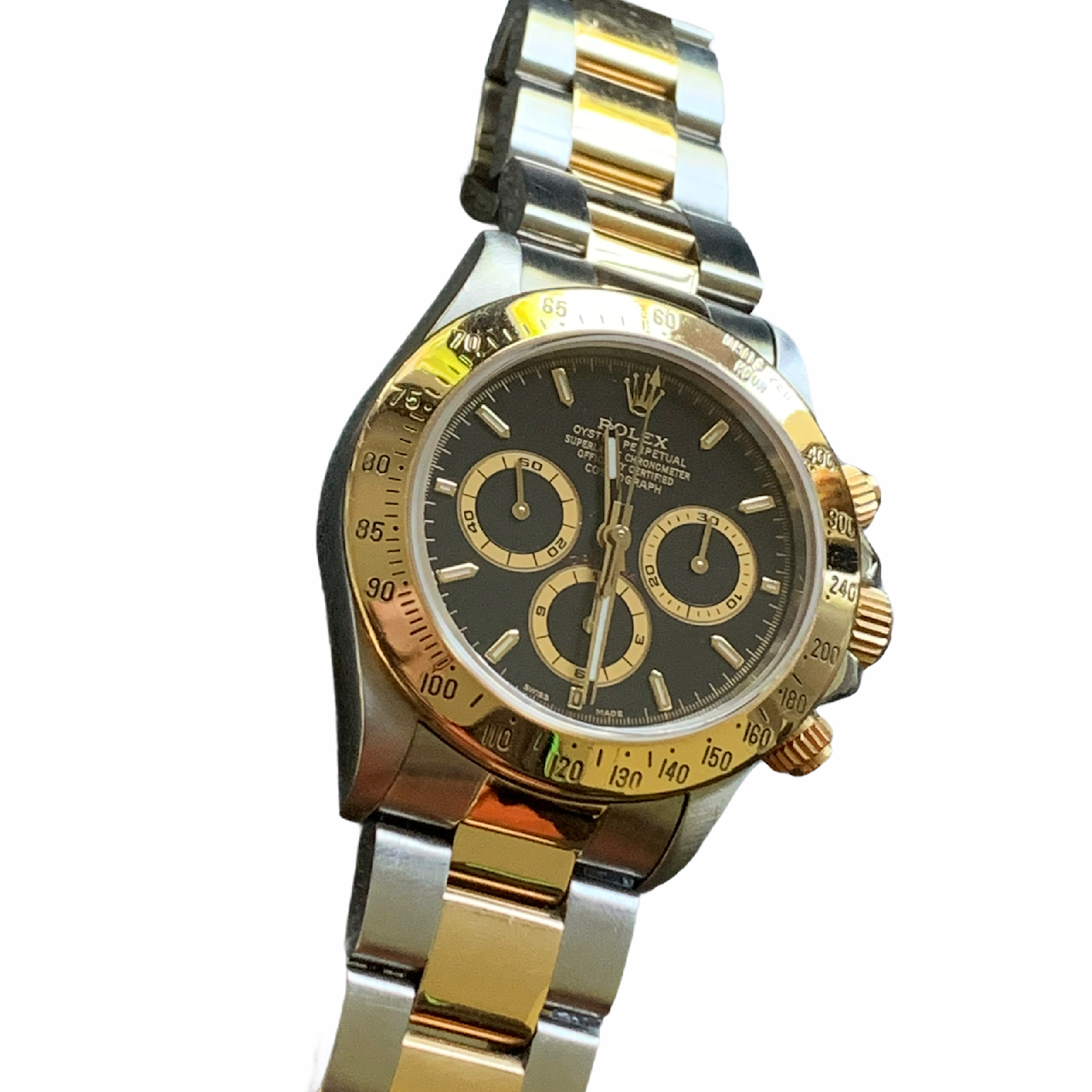 Rolex Daytona 16523 Stainless Steel and Gold Watch Black Dial
