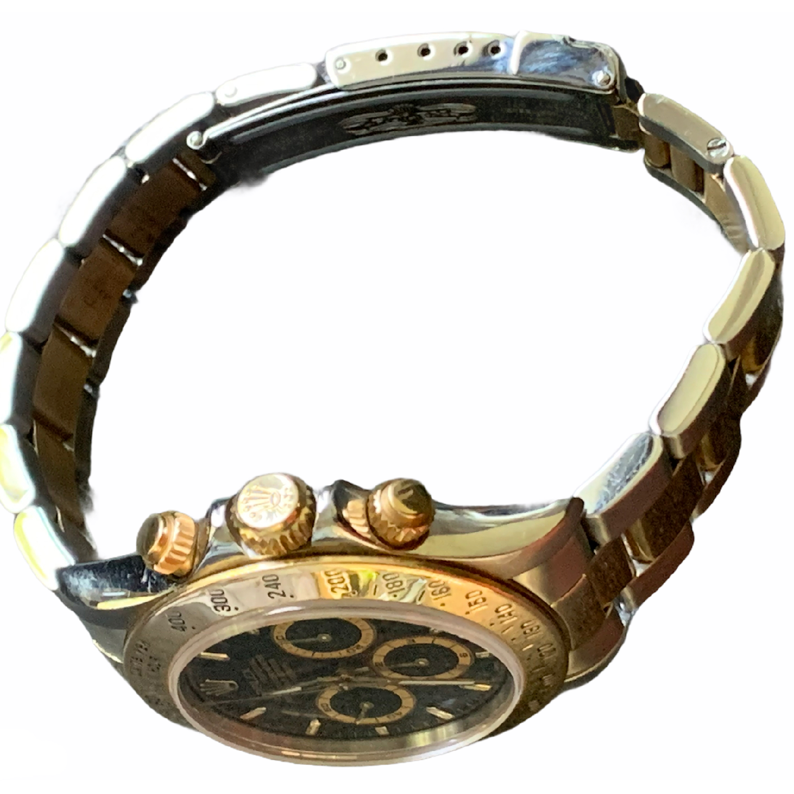 This Rolex Daytona 16523 is a rare and highly sought-after model, particularly for its unique combination of stainless steel and gold. The watch’s condition is excellent, considering its age, with the U serial number indicating it was produced in 1997.