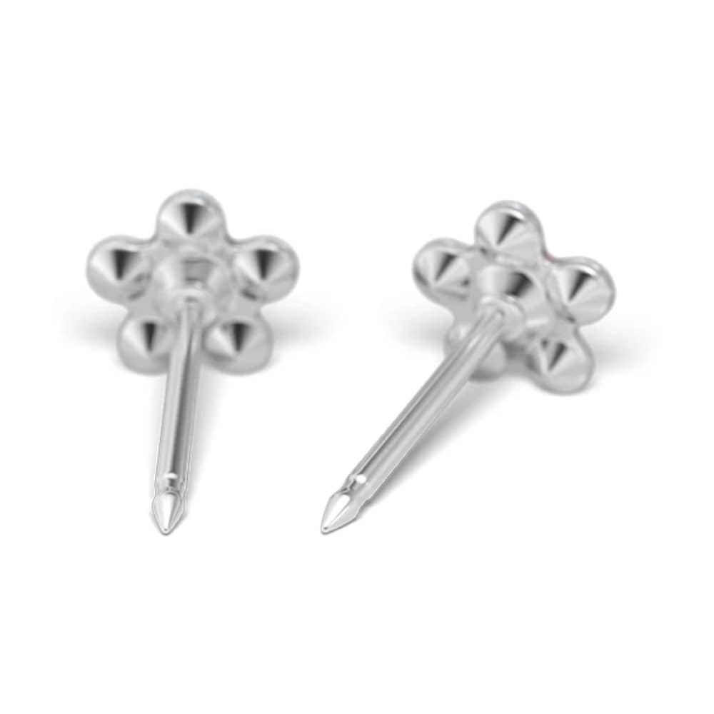Experience the perfect blend of elegance and durability in these exquisite 5mm flower earrings. Crafted from high-quality surgical steel, they feature a beautiful flower motif adorned with sparkling zircon crystals and vibrant fuchsia-colored accents.