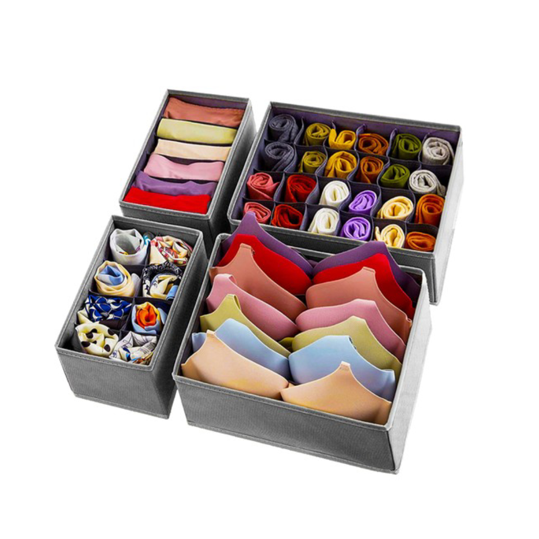 - PACKAGE OF 4 ORGANIZERS – the set includes a total of 4 organizers, each of which can be used to store different underwear. One will be useful for socks, the other for bras, and the third for panties or ties. Each of the organizers will certainly be used in the right way.