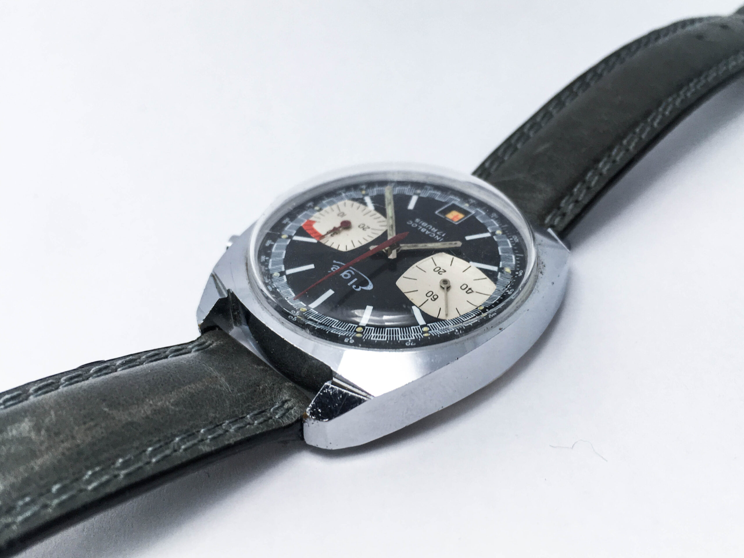 Step back in time with this stunning vintage Elge chronograph men’s watch from the 1970s, boasting a sleek panda dial and exceptional craftsmanship. This beautifully preserved timepiece is not only visually striking but also functions flawlessly, thanks to its reliable Valjoux caliber 7734 movement.