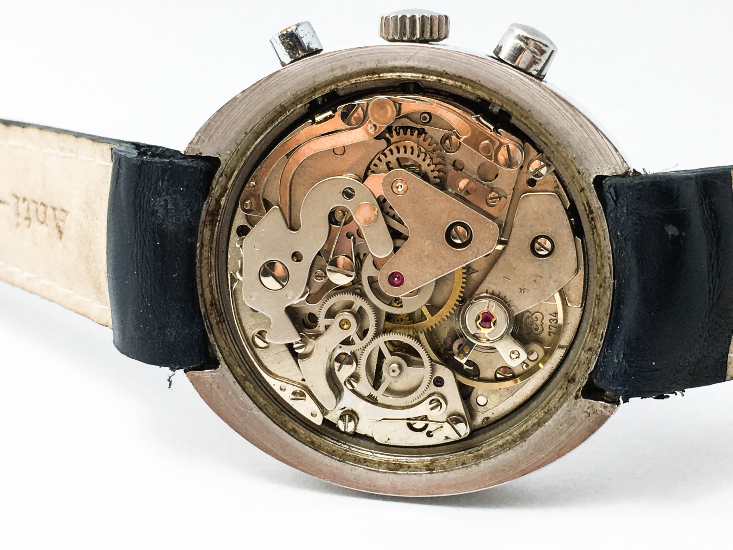 - Movement: Manual-winding movement on Valjoux caliber 7734